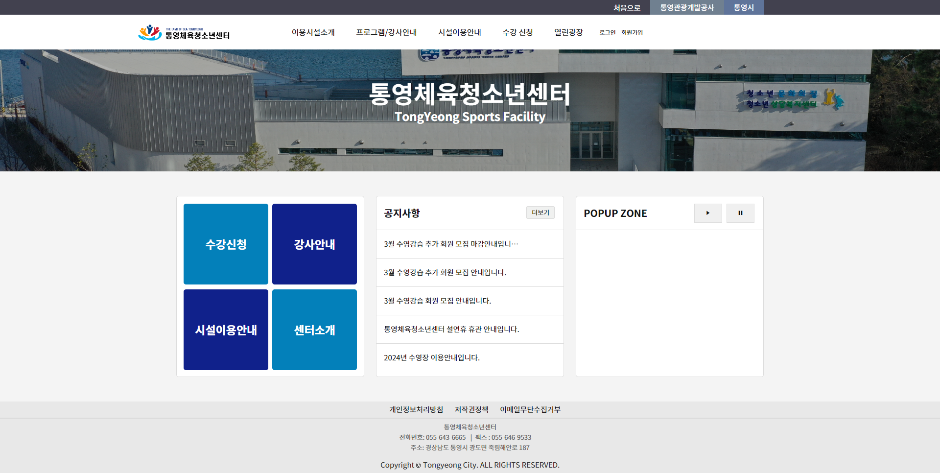 | 적용기술 반응형 홈페이지 구축, 수강신청, 수강현황, 게시판 기능 개발 |